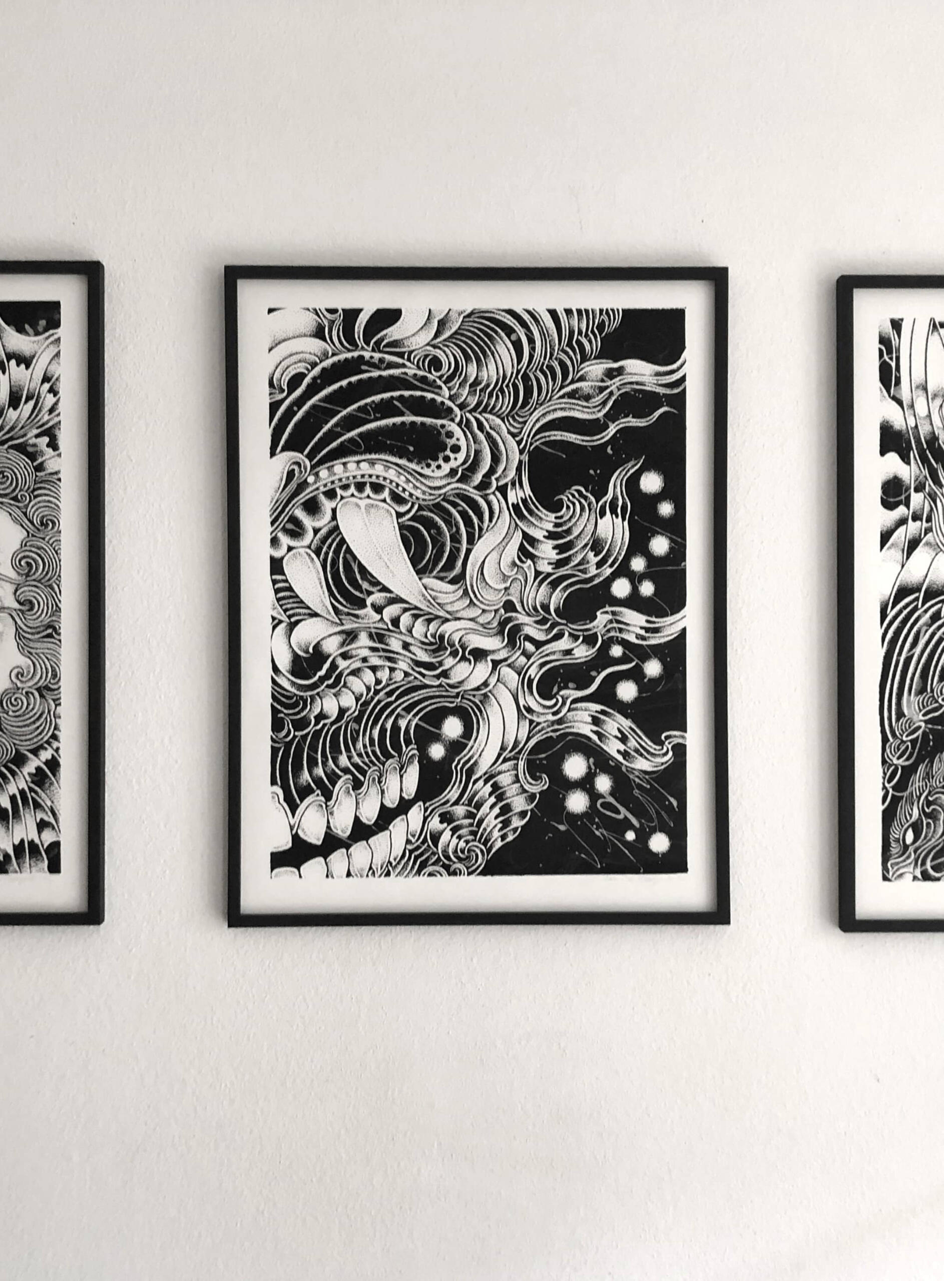 Le verre avec protection UV, ainsi que les cartons au pH neutre garantissent la conservation des œuvres dans le temps.